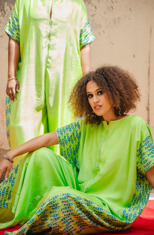 Haritha, a Telugu expression of growth and renewal, celebrates vibrant energy and effortless ease. Designed with hand block–printed accents, this relaxed jumpsuit embodies movement, balance, and flourishing life. A silhouette that feels as powerful as it is comfortable.