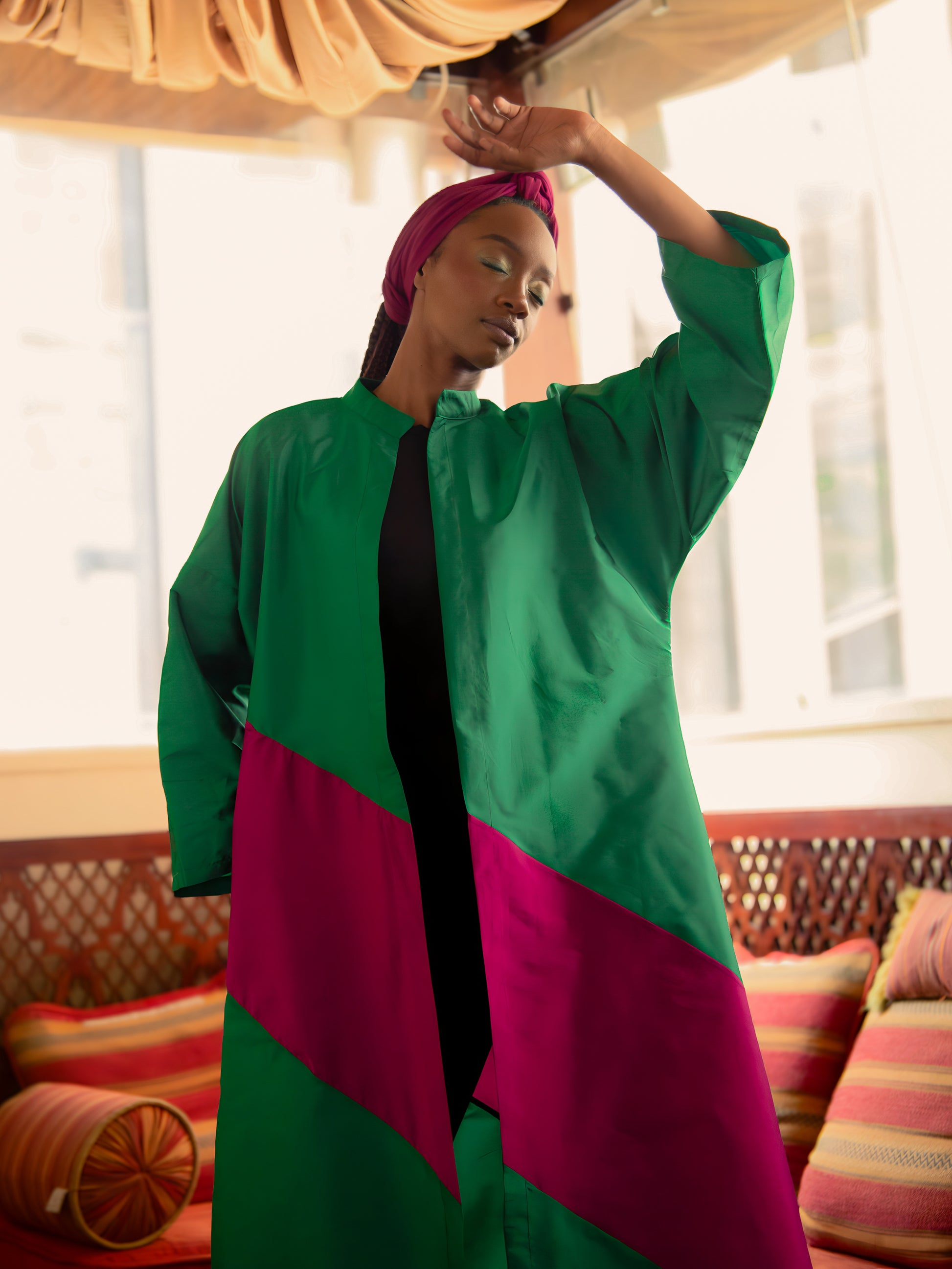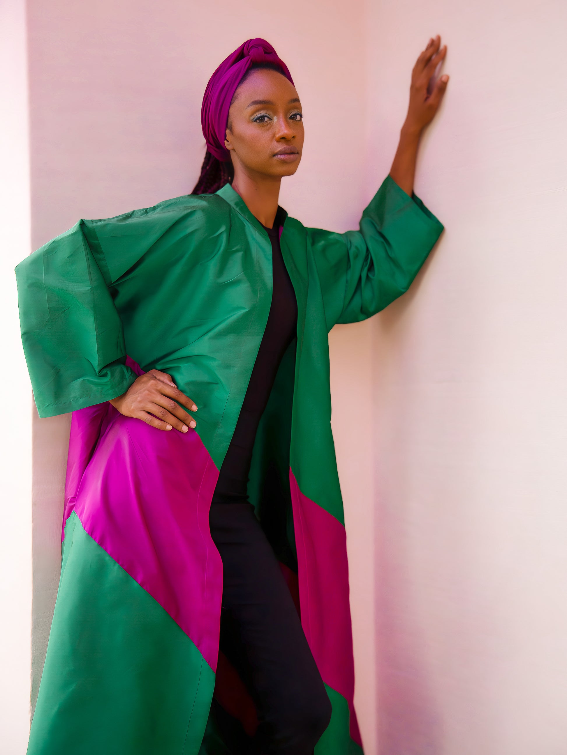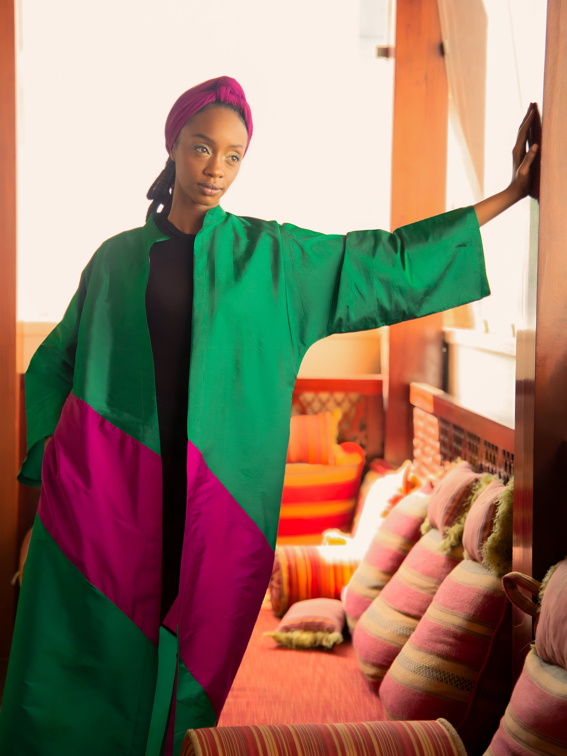 The perfect kimono to glide into the room and get noticed immediately. Rangu in Telugu, Dhvani's Indian language, simply means colour. Crafted in an elite combination of fine silk and fine cotton, Rangu reminds Dhvani of the kaleidoscope of Indian saris she grew up watching her mother and aunties wear. This Kimono shimmers in the light and in the shadow reflecting different shades each time. Throw her on to elevate literally any outfit, and get ready to be asked 'Omg, where did you get this?'